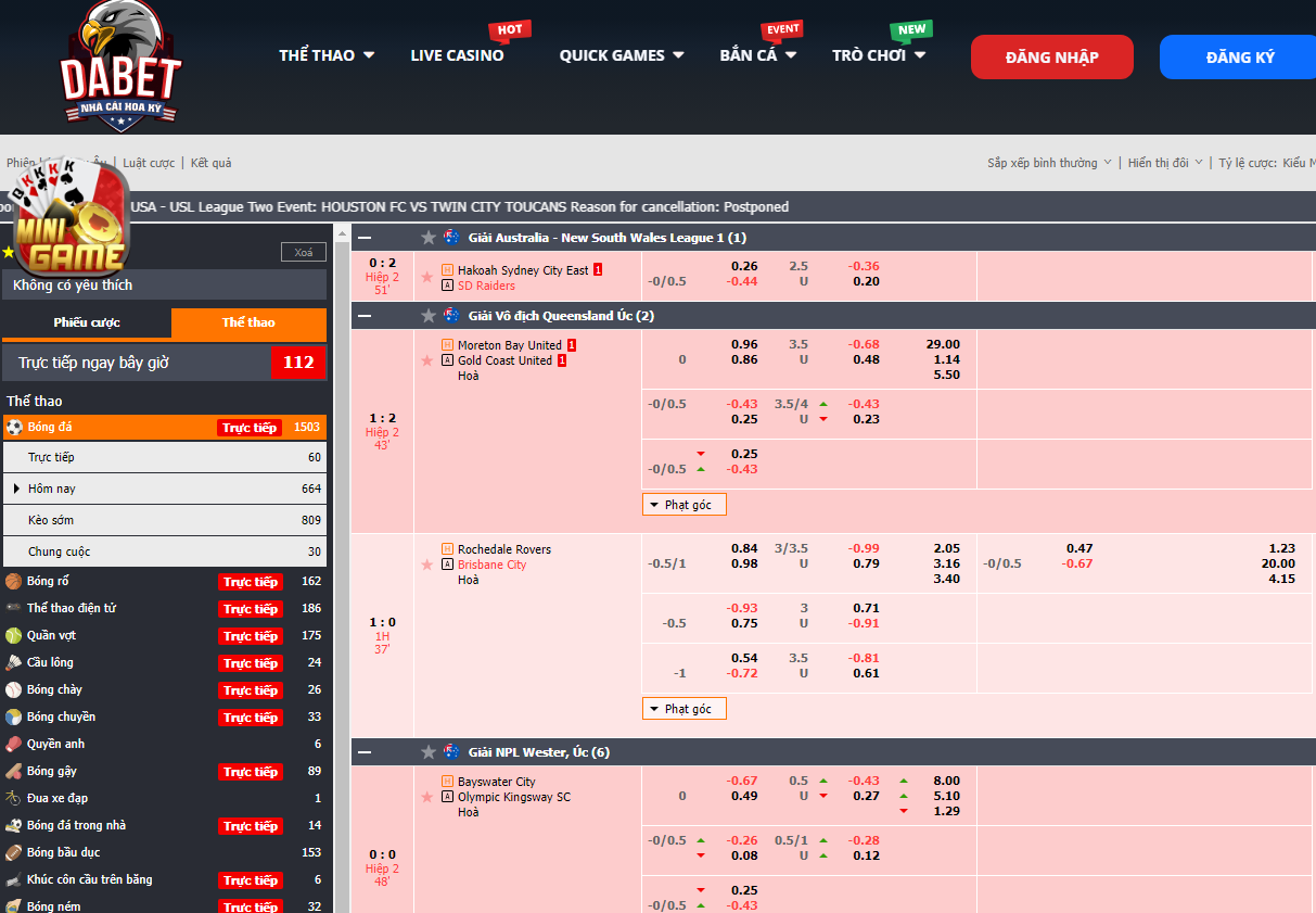 Tỷ lệ ăn của các kèo cược Dabet hấp dẫn