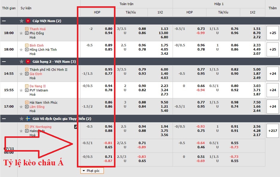 Tỉ lệ kèo nhà cái châu Á