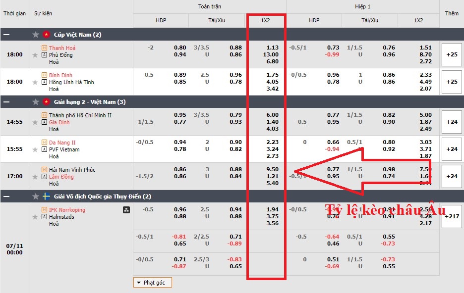 Tỉ lệ kèo châu Âu