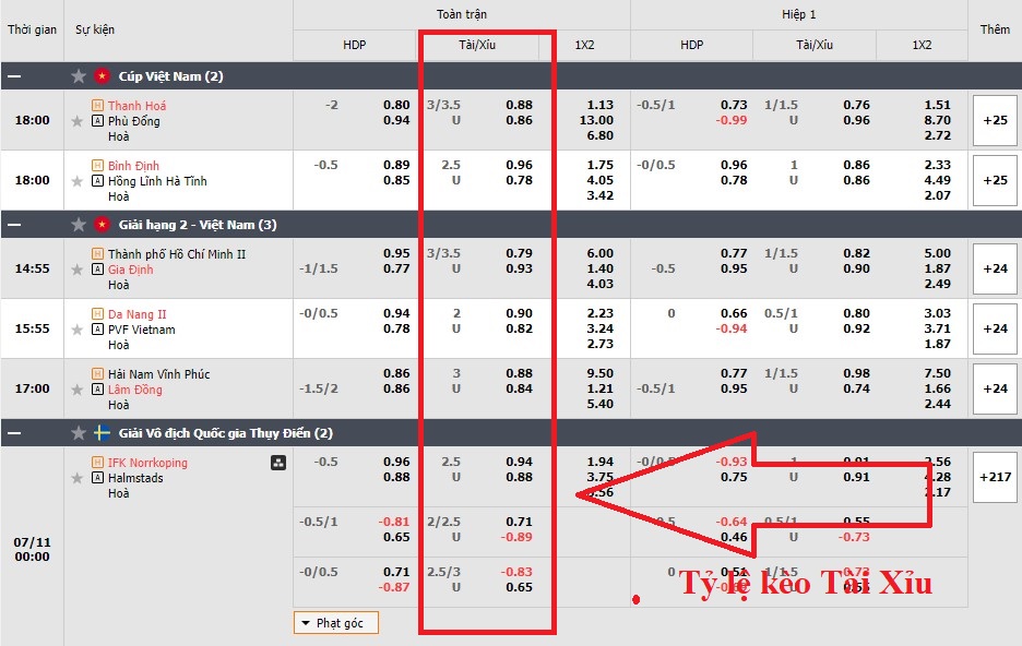 Tỉ lệ kèo Tài/Xỉu